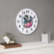 This wall clock is shown with a cute farm cow and pink peony flowers art print.