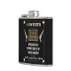 Well made flask, a little better than I had expected. Flask came in clear plastic box which gave it a nice presentation when I took it out of the zazzle packaging. Image is not printed on flask but on sticker. Don't know how this will hold up I haven't used it yet. This would make a Great gift! I plan to purchase more for friends! Cheers. I thought a little brighter than computer. Very crisp, writing wasn't