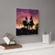 A country western image of a cowgirl and cowboy riding off into the sunset.