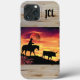 Personalise this Unique "One of a Kind" Cowboy and Longhorn Steer iPhone Case! It Features a Cowboy Riding a Horse Herding a Longhorn Steer During a Beautiful Orange Sunset...Surrounded by Wood Borders!