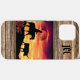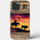 Personalise this Unique "One of a Kind" Cowboy and Longhorn Steer iPhone Case! It Features a Cowboy Riding a Horse Herding a Longhorn Steer During a Beautiful Orange Sunset...Surrounded by Wood Borders!