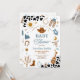 Saddle up for a memorable celebration with this western cowboy baby shower invitation! Featuring rustic illustrations like cowboy hats, boots, lassos, cacti, and cow print accents, this design perfectly sets the tone for a fun and festive gathering. The bold typography and charming western details make it ideal for honoring parents-to-be in style. Personalize with your event details and create a keepsake guests will love.