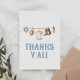 Say thank you to friends and family for celebrating the little one on the way with this cowboy themed baby shower thank you card.
