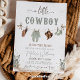 Cowboy Baby Shower Invitation green Little Cowboy is on the Way Wild West Western Get ready to welcome your little cowboy with this charming Cowboy Baby Shower Invitation! Featuring a delightful green colour palette and rustic Wild West design, this invite sets the perfect tone for a western-themed celebration. With its playful "Little Cowboy is on the Way" message and Western-inspired details, this invitation is ideal for honouring the arrival of a baby boy in true cowboy style. Perfect for a Wild West Baby Shower, this Western Cowboy Invitation combines rustic charm and modern design, making it an unforgettable way to invite guests to your special event. All products in this store are copyright SpaceBeeFunParty © All SpaceBeeFunParty products are for PERSONAL USE only! It is STRONGLY FORBIDDEN! commercial use, sale, donation, uploading to third-party sites, altering, distorting colours, extracting elements, or altering any of our products. Commercial use of these products, designs, or graphics in any way will be considered copyright infringement. All rights reserved by SpaceBeeFunParty.