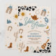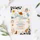 Saddle up for a rootin tootin celebration with this western cowboy birthday party invitation! Featuring playful illustrations like cowboy hats, boots, lassos, cacti, and a sheriff badge, this design sets the perfect tone for a fun-filled event. The bold cow print border and colorful text make it eye-catching and festive, while the rustic theme adds charm for little wranglers. Ideal for kids birthdays, this invitation is customizable with your party details and sure to delight guests.