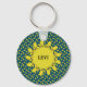 Cowboy hat birthday party design in teal and gold, features WindyDesign's hand-drawn artwork on a keychain, a perfect goodie bag item.
