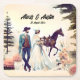 Cowboy, Bride & Horse Wedding Square Paper Coaster
