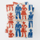 A bold, symmetrical pattern featuring stylized cowboys in blue and cowgirls in red, arranged in alternating rows and columns. Each figure is rendered with vintage flair—wide-brim hats, boots, holsters, and flared skirts—evoking the spirit of mid-century Americana. The design’s rhythmic repetition and strong color contrast create a dynamic visual cadence, celebrating Western iconography with editorial clarity and nostalgic charm.