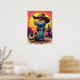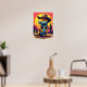 This artwork is special because it takes a beloved pet and transforms him into an iconic pop culture character. The combination of a tough-looking lizard with a cute cowboy hat creates a unique and humourous contrast that's instantly appealing. Its vibrant pop-art style—with bold outlines and a neon sunset—makes it a standout piece, perfect for anyone who loves funny memes, pets, or the whimsical side of fantasy.