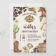 Giddy up for a celebration to remember with this rustic "First Rodeo" birthday invitation. Featuring a classic Wild West aesthetic with vintage cowboy accents, it is the perfect way to invite friends and family to your little buckaroo's big milestone. This easily customisable template allows you to personalise all the party details to ensure your ranch-themed event starts off on the right hoof.
