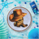 COWBOY HAT AND BOOTS---ON DENIM LOOK BACKGROUND.---USE ANY COLOR FOR BACKGROUND.----ADD SOME TEXT.---USE ANY FONT AND FONT COLOR.