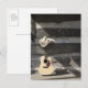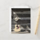 Cowboy hat on guitar leaning on log cabin postcard