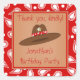 These cute stickers make a great addition to your cowboy or cowgirl birthday party favours! Thank your birthday party guests with these Cowboy Hat Red Bandanna Birthday Party Stickers by personalising them with your own message and name. You can also add text like, "this book belongs to: " along with your child's name and you have great little book labels! Matching Cowboy Hat Red Bandanna Birthday Party Invitations are also available!