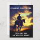 A cowboy is silhouetted against a sunset. The text reads, "A cowboy doesn't retire. He rides off into the sunset."
