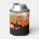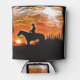 The silhouette of a rancher cowboy on his horse with a beautiful orange sunset in the background.