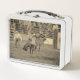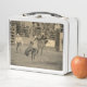 This is a standard metal lunchbox that appears to work just fine. We designed this box ourselves with an uploaded photo and custom text on the front and back. It looks absolutely beautiful except the front of the lunchbox is not centered like it shows in the photo. The print borders don't align with the inset flat part of the box where the preview photo online showed it perfectly centered in there. The back looks nice and centered though.