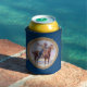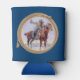 C.M. Russel cowboy on horse making a toast with a drink beer koozie