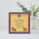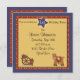 This cowboy/cowgirl birthday party has a star to put the birthday in on front and larger star on the back to include the date or other wording if you wish. This invitation is designed in red with white circles and navy border.
