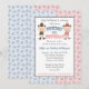 A western themed gender reveal party invitation. Cute illustrations of a little cowboy and cowgirl with a pink and blue horseshoe pattern. Graphics © Scrappin Doodles at www.scrappindoodles.com