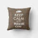 This customisable cowboy pillow says Keep Calm and Ride On. It has an image of a cowboy hat instead of the crown logo.