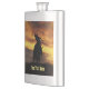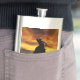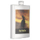 A flask to be customised with your text! A super cool country western rodeo image of a cowboy roping a steer in a very cool sunset.