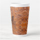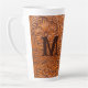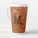 Rustic western country pattern tooled leather print monogram latte mug. Cowboy wedding favours.