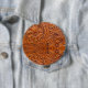 Rustic western country pattern tooled leather print pin button. Cowboy fashion decor accessories.
