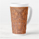 Rustic western country pattern tooled leather print latte mug. Cowboy fashion decor accessories.