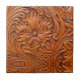 Rustic western country pattern tooled leather print ceramic tile. Cowboy fashion decor accessories.