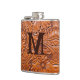 Rustic western country pattern tooled leather print monogrammed flask. Cowboy wedding favours.