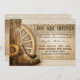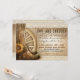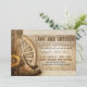 Unique design cowboy - western style shoes with sunflower blossom, rustic country brown wood background, white vintage lace and typographic texts wedding invitations. I suggest the "Linen" or "Felt" paper for this design.