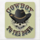 Funny cowboy skull with arrow through his hat and COWBOY TO THE BONE text.