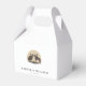 Impress your guests with our Western Wedding Favour Box. Featuring the bride and groom's names and wedding date in a western font, this box showcases a romantic silhouette of a cowboy wedding couple on horseback against a sunset. Perfect for adding a touch of rustic romance and personalised charm to your country-themed celebration.