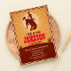 Howdy! Celebrate your Birthday Party with our Cowboy Photo Party Invitation. Design features a cowboy on his rodeo horse illustration on a vintage brown background. This vintage western party invitation perfect for your little boy wild west birthday party, western baby shower invitations or use them as a cowboy rodeo invitations