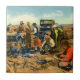 Vintage image of cowboys eating their lunch of tortillas and beans in a wide prairie in the southwest.