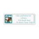 Western themed holiday return address labels that have cowboys and cowgirls in roping poses on a blue ornament background. That area is where you can add your photo. Customise the text with your personal information.