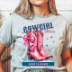 Show off your cowgirl spirit with this stylish "Cowgirl Attitude – Born to Dance" t-shirt! Featuring a pair of pink cowboy boots adorned with croquette bow, this design is set in vibrant pink and teal tones with elegant script calligraphy. Whether you're two-stepping, line dancing, or just embracing your western style, this customisable tee is perfect for country music lovers, rodeo fans, and dance enthusiasts. Personalise it with your name or favourite phrase for a unique touch!
