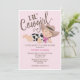 Cowgirl Baby Girl with fair skin, brunette hair, and brown eyes, wearing a cowprint bodysuit and a pink bandanna. Contact store owner for different skin/hair/eye combinations as well as outfit or background colour changes, if you can't find what you're looking for. Remove the optional white border if you select an invitation shape other than the standard rectangle.