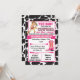 Yeehaw! Celebrate cowgirl style with this super cute Cowgirl Baby Shower party invitation with an vintage illustration of a cute little baby cowboy riding on her toy pony, cowboy boot and fun typography against a cow skin patterned background.