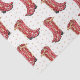 This Christmas tissue paper features a watercolor portrait of a pair of bright red cowgirl boots decorated with a gold ribbon bow against a polka dot background.