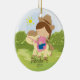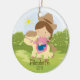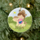 Personalise Dated Cute little brunette cowgirl horseback rider girl Christmas Ornament set on a grass & tree background. Cute horse ornament features the sweetest little girl riding her pony. A Wonder Christmas gift sure to be treasured for many years to come.