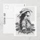 This beautiful postcard features a stunning country western cowgirl artwork, perfect for any fan of the Wild West. The image depicts a graceful cowgirl in a warm breeze. The colours are soft and black & white, capturing the spirit of the American frontier. This postcard is sure to bring a touch of the Old West to any room or collection. Check out my postcard collection at www.zazzle.com/basereality