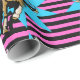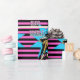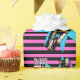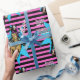 Cowgirl on running horse print on pink and black stripe gift wrapping paper. Happy Birthday