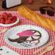 A graphic illustration of cowgirl hat and cowgirl boots on a party plate.
