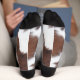 The cowhide leather details are simulated in the artwork. No actual cowhide or leather will be used in the making of this product.