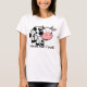 Cute cartoon smiling cow with message "friend not food!" underneath him.