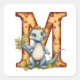 Coy Dinosaur and the Patterned Letter M Square Sticker