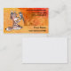 A cartoon coyote pup with a magpie friend, on a fiery orange business card design.
