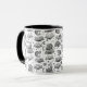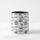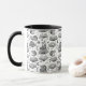 Indulge in your love for literature and felines with this enchanting mug featuring a detailed black and white pattern of cats resting on stacks of books, surrounded by whimsical celestial and floral elements. This delightful design captures the cozy essence of a perfect reading day. The mug itself has a contrasting black handle and interior, making the intricate artwork pop against the white exterior. It's the ideal gift for librarians, bookworms, cat lovers, or anyone who cherishes a quiet moment with a good book and a warm drink. Perfect for coffee, tea, or hot cocoa.