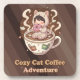 Cozy Cat Coffee Adventure Art Coaster